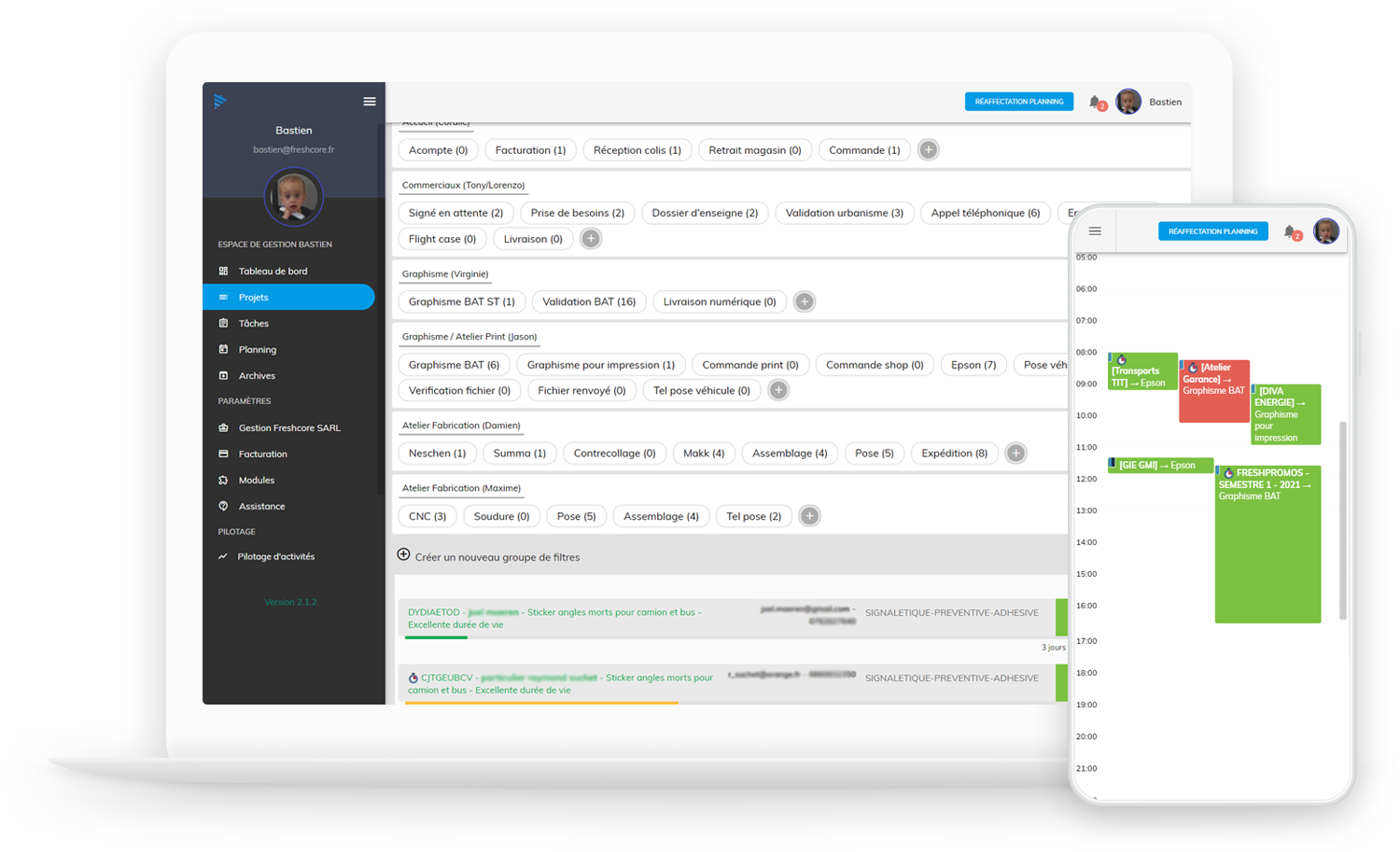 L’outil Freshprocess a été créé pour et par des professionnels des arts graphiques dans le but de supprimer les tâches chronophages du quotidien, monter en volume grâce à l’automatisation de tâches, planning et bon à tirer.